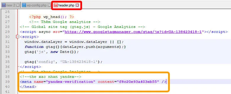 Ví dụ ở đây mình xác thực bằng thẻ meta, bằng cách thêm đoạn thẻ meta này vào trước thẻ đóng </head>.