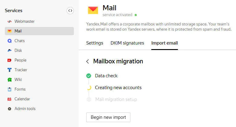 Begin mail migration.