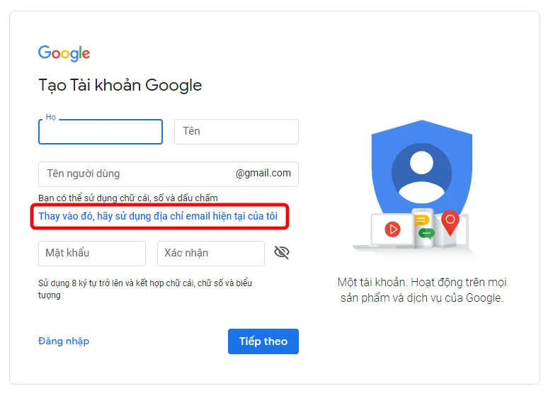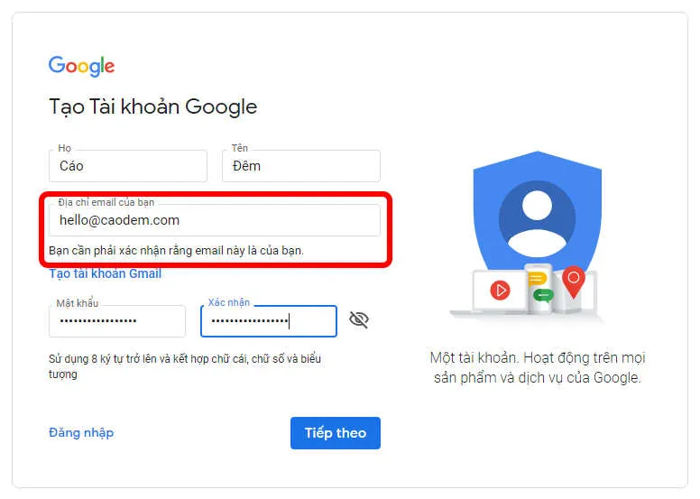 Nhập đầy đủ thông tin để tạo mới tài khoản Google.