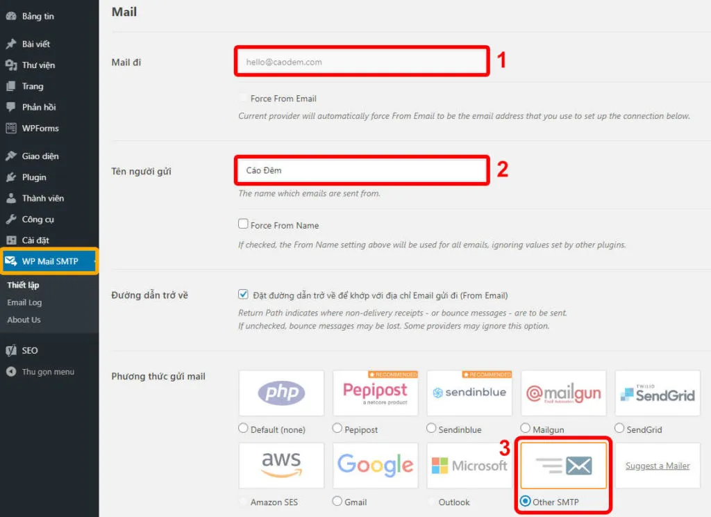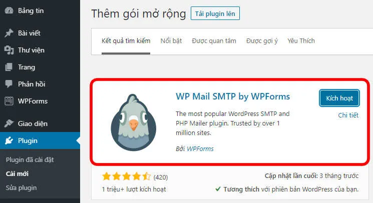Cài đặt plugin WP Mail SMTP cho WordPress.