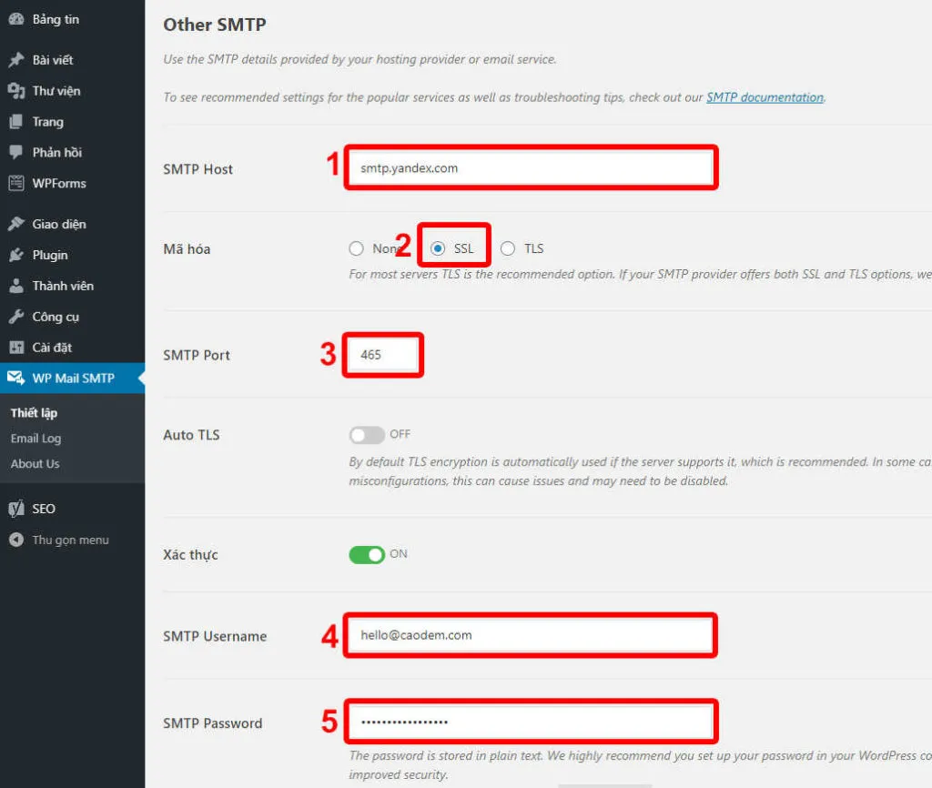 Sử dụng Yandex mail SMTP cho WordPress
